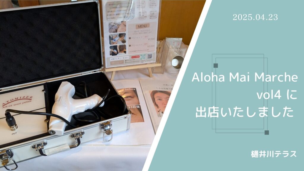 【2025.4.23】Aloha Mai Marche vol4 に出店に出店しました。 4月23日に福岡市城南区にある樋井川テラスでおこなわれました「 Aloha Mai Marche vol4 」 に参加させていただきました。 平日で雨ということもありゆったりとした時間でしたが、ホームページ... -